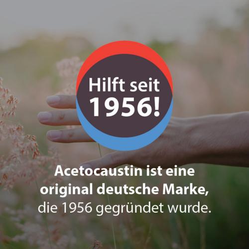 • Deutsche Qualität: Als Medizinprodukt Klasse IIa und als Teil einer original deutschen Traditionsmarke seit 1956 steht Acetocaustin® für bewährte Qualität und Verlässlichkeit.