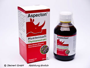 | Wirksubstanz | Thymiankraut-Dickextrakt (1,7-2,5:1); Auszugsmittel: Ammoniaklösung 10% (m/m), Glycerol 85% (m/m), Ethanol 90% (V/V), Wasser (1:20:70:109) |