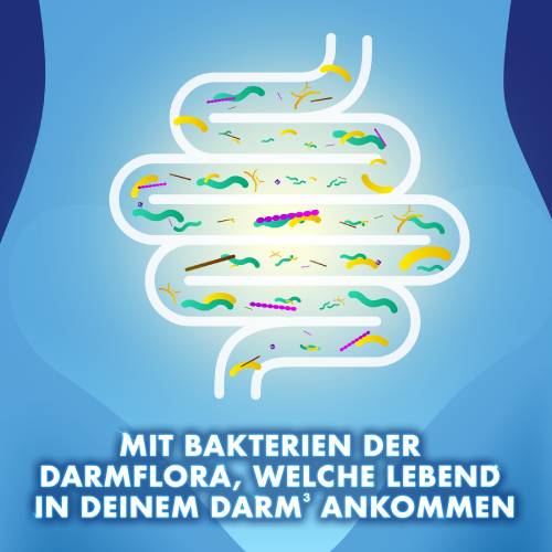 - 3 Bakterien der Darmflora, die dank einer speziellen Beschichtung der Tablette lebend in den Darm gelangen3.