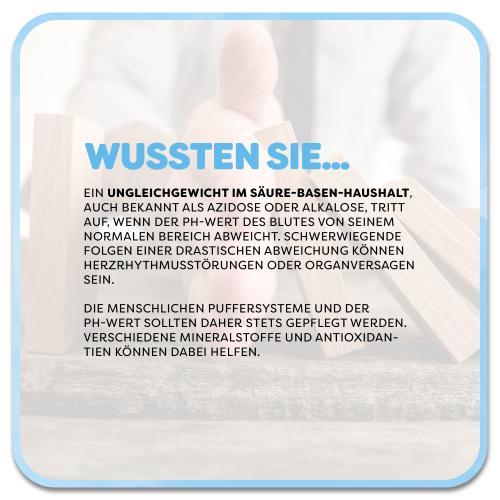 - SÄURE-BASEN-HAUSHALT: Unterstützung für den Säure-Basen-Haushalt, der das Gleichgewicht im Körper hält und dafür sorgt, dass Stoffwechselprozesse, Enzyme und Zellen richtig funktionieren