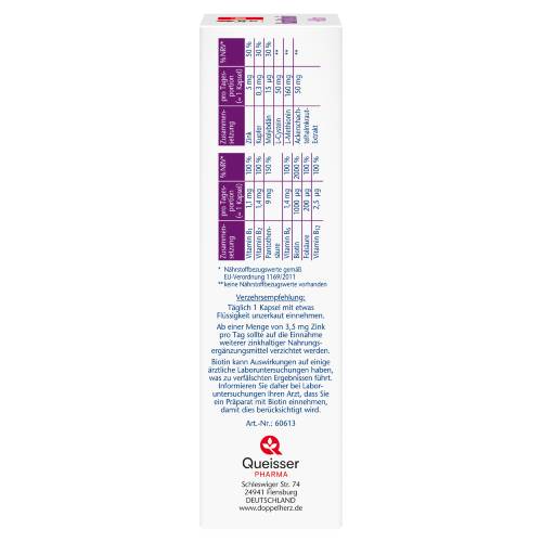 - Biotin + Zink als Beitrag zum Erhalt normaler Haare