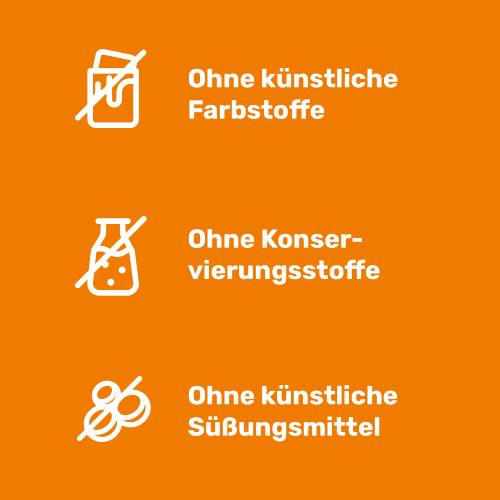 - Ohne Farb- und Konservierungsstoffe und künstliche Süßungsmittel