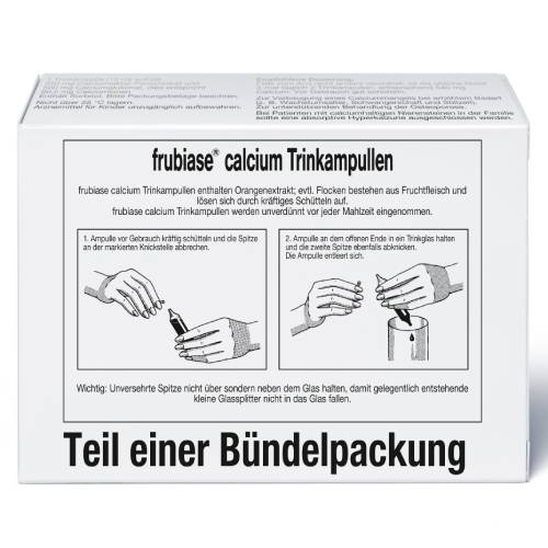 Frubiase Calcium Trinkampullen ist ein Calcium Mineralstoffpräparat. Der menschliche Körper benötigt den lebenswichtigen Mineralstoff Calcium für den Knochen- und Zahnaufbau sowie deren Erhalt. Außerdem ist Calcium wichtig für die Blutgerinnung, die Muskelbewegung und die Reizübertragung an den Nerven. Die Frubiase Calcium Trinkampullen werden zur Vorbeugung eines Calciummangels und bei erhöhtem Bedarf zum Beispiel Wachstumsalter, Schwangerschaft oder Stillzeit eingesetzt. Ebenso zur unterstützenden Behandlung der Osteoporose.