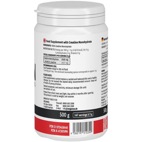 KREATIN MONOHYDRAT 100% Megamax Pulver