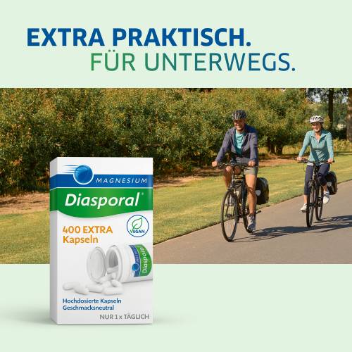 Magnesium-Diasporal® 400 EXTRA Kapseln sind die ideale Produktvariante für alle, die im Alltag viel in Bewegung sind. Für den erhöhten Magnesiumbedarf.