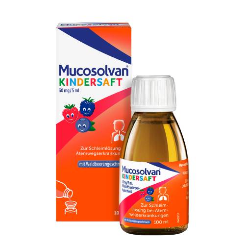 Hat sich bei Ihrem Kind ein zäher Hustenschleim in den Bronchien festgesetzt? MUCOSOLVAN® Kindersaft mit Waldbeergeschmack hilft dabei, das hartnäckige Sekret von den Schleimhäuten zu lösen und es aus dem Körper zu befördern. Der Wirkstoff Ambroxol verflüssigt den Schleim und regt die Bewegung der Flimmerhärchen an, sodass dieser einfacher aus den Atemwegen abtransportiert werden kann.