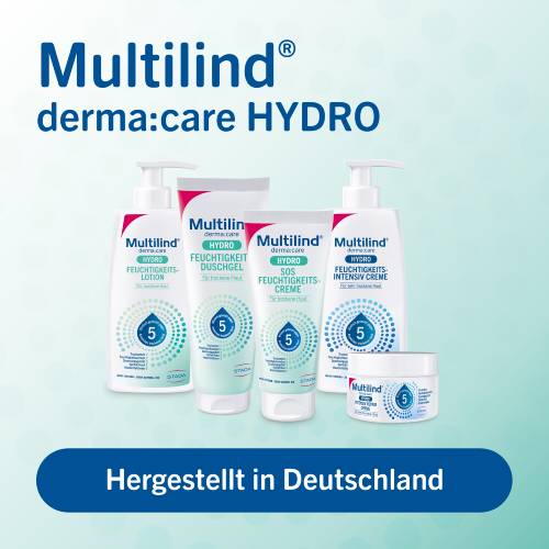 Die Hautpflegeserie Multilind® derma:care HYDRO wurde speziell entwickelt, um die 5 häufigsten Anzeichen trockener Haut zu bekämpfen sowie die Beschaffenheit und das Hautgefühl zu verbessern. Sie dient zur täglichen Pflege trockener und sehr trockener Haut sowie zur Spezialpflege besonders trockener und rauer Hautareale.