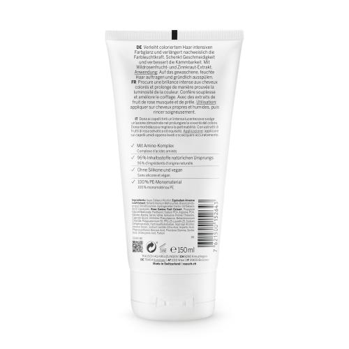 Coloriertes Haar ist durch das Färben besonders beansprucht. Durch häufiges Nachfärben kann das Haar spröde und glanzlos werden. Der Farbschutz-Conditioner mit Wildrose und Zinnkraut versorgt Dein Haar mit allem, was nach einer Behandlung mit Farbe nötig ist. Das Haar wird gestärkt und die Schuppenschicht geschlossen. Und das Beste ist: unser hochwirksamer Amino-Komplex sorgt nachweislich dafür, dass die Farbe länger in Deinem Haar hält und Du es nicht so schnell nachfärben musst.
