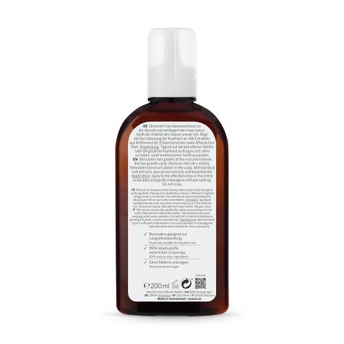 • Hergestellt in der Schweiz mit hauseigenem Klettenwurzel-Extrakt und ätherischen Ölen