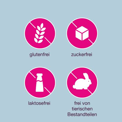 - Langsam und gründlich zerkauen, bis die Tablette vollständig aufgelöst ist, damit sich der Gel-Komplex bereits im Mund entfalten kann. Der Gel-Komplex wird anschließend hinuntergeschluckt