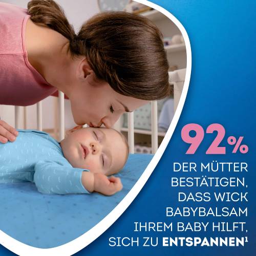 WICK BabyBalsam ist ein Kosmetikum, das Feuchtigkeit spendet und gemeinsam mit liebevollen Berührungen für eine entspannende Babymassage ab 6 Monaten genutzt werden kann. WICK BabyBalsam enthält feuchtigkeitsspendenden Aloe Vera-Extrakt und den beruhigenden Duft von Rosmarin und Lavendel. 92% der Mütter sagen in einer Umfrage1, dass WICK BabyBalsam ihrem Baby hilft, sich zu entspannen.